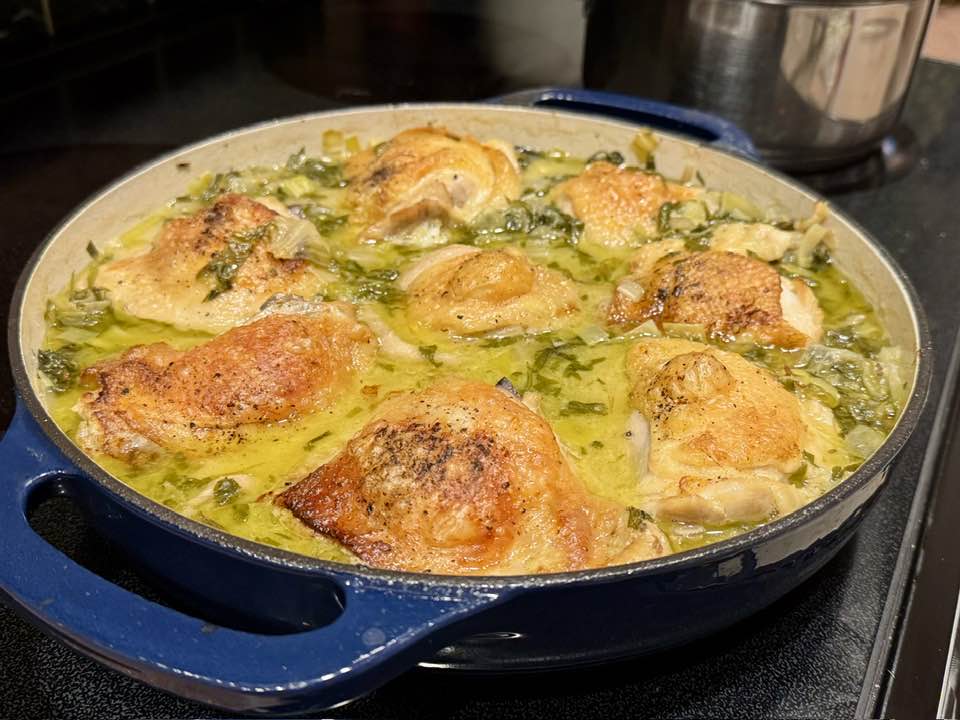This is what I mean when I talk about cooking: recipes are guides, not gospel. You read it, you understand the why behind the steps, and then you trust your instincts. If something’s already golden, you don’t need to broil it. If you have extra wine, use it. If you want more leeks, use more leeks.